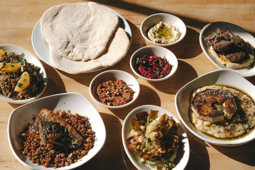 Serves meat, vegan options available. Mediterranean restaurant and market. Vegan choices are marked and include grilled artichoke, falafel, pasta, and celeriac steak. Open Tue-Fri 10:00am-6:00pm, Sat 10:00am-4:00pm. Closed Sun & Mon. Food served 11 AM - 3 PM only.