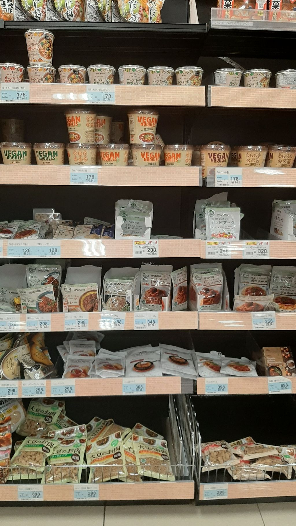 Daiei is one of Aeon's chain of supermarkets which is one of the bigger carriers of vegan merchandise. This branch has vegan cheese, soy meat, nut milks, soy icecrean, and other cooking necessities.