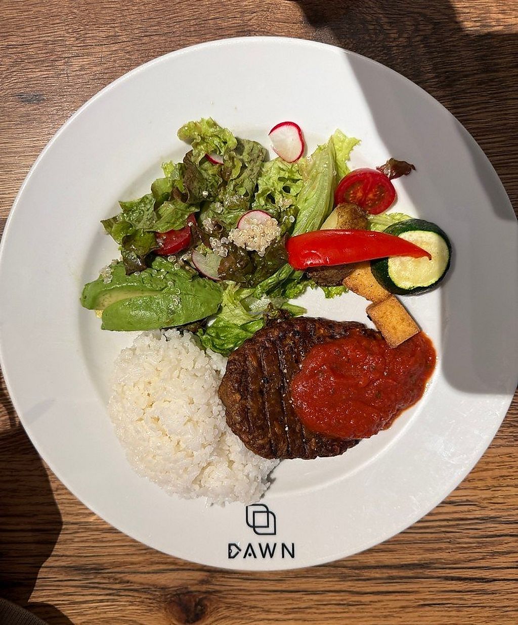 Coffee house with remote-controlled robot servers. Offers some vegan choices such as plant-based milks for coffee, vegan burger plate, soup of the day and vegetable keema curry. Allergens are clearly denoted on the menu. Open Mon-Wed 11:00am-7:00pm, Fri-Sun 11:00am-7:00pm. Closed Thur.