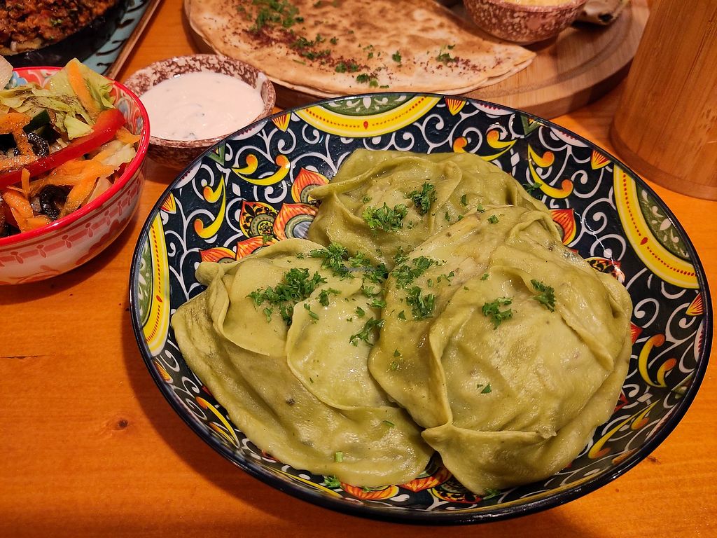 I’ve never had Uzbek food before. We had the stuffed flatbreads, Dervish stew and four sauces with mixed veg. It was very nice. Cash only.