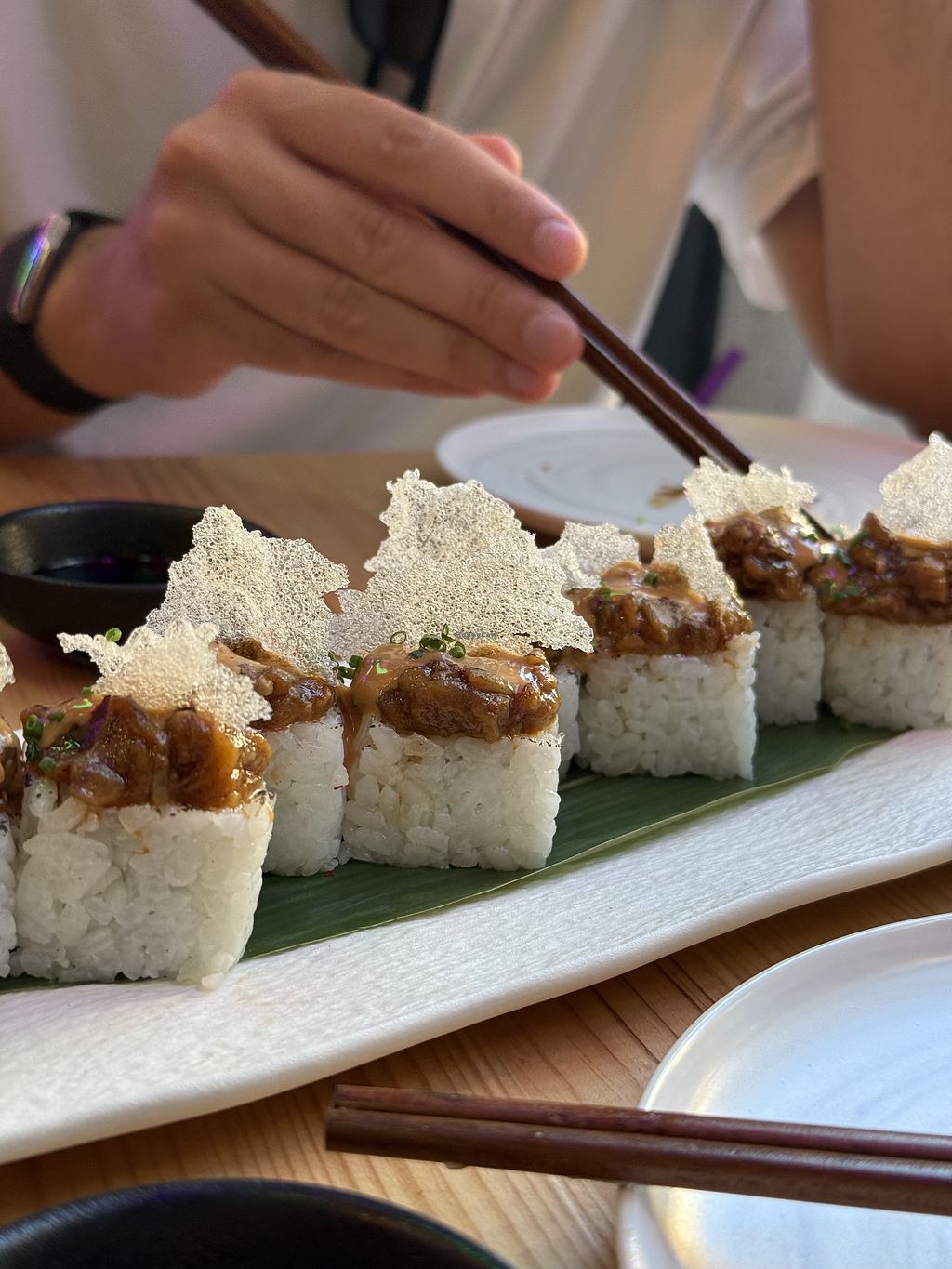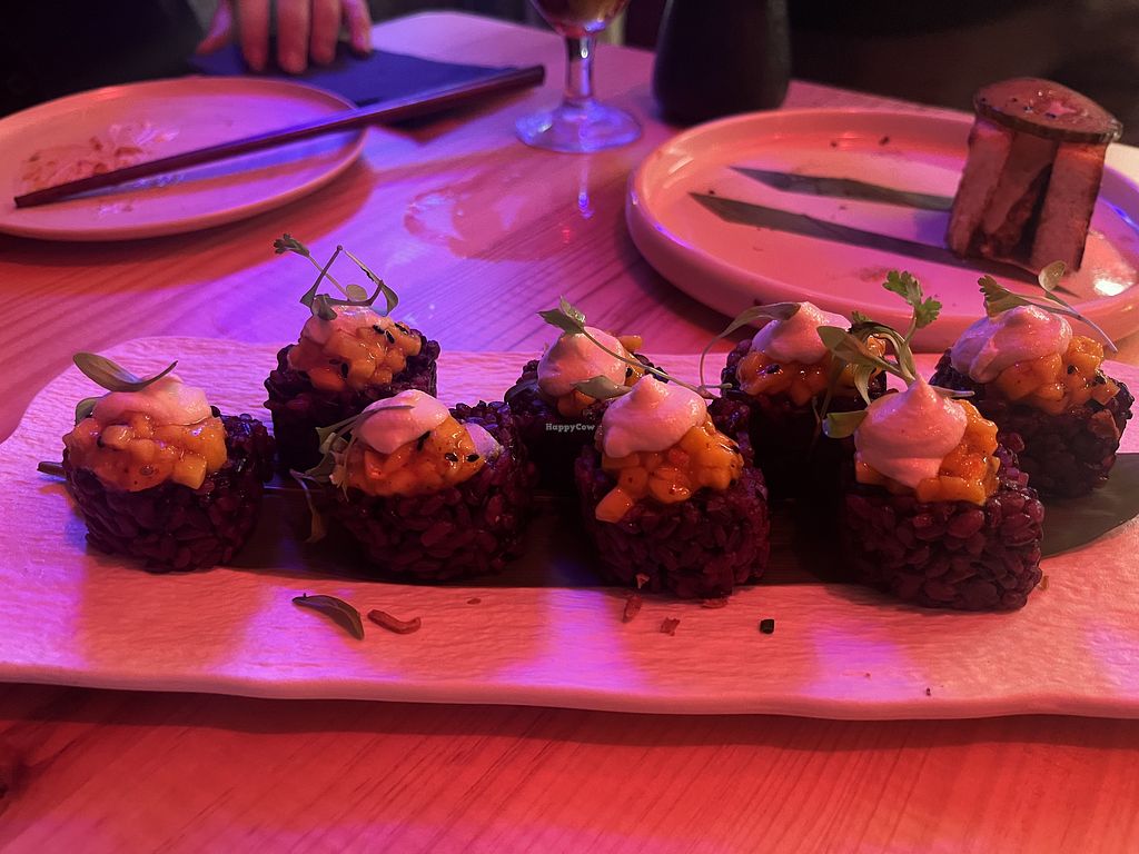 Fuimos directamente a probar nigiris y shushis porque mi mamá nunca había probado ninguno vegano, fueron muy amables explicando el contenido de los platos y dando recomendaciones, los shushis el bao nos los comimos sin fotos ni nada, pero al postre si le saqué una