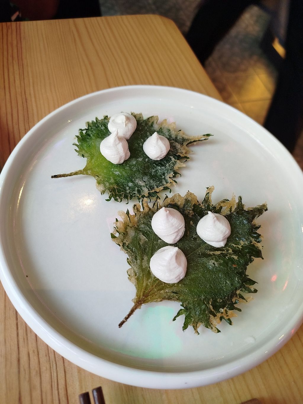 Read moreThe food was a ride. Ordered the Shiso's Tempura. Like anything tempura, it first tastes of oil. The leaf was there, but very subtle, the sauce was tasty. More of a novelty tapa.