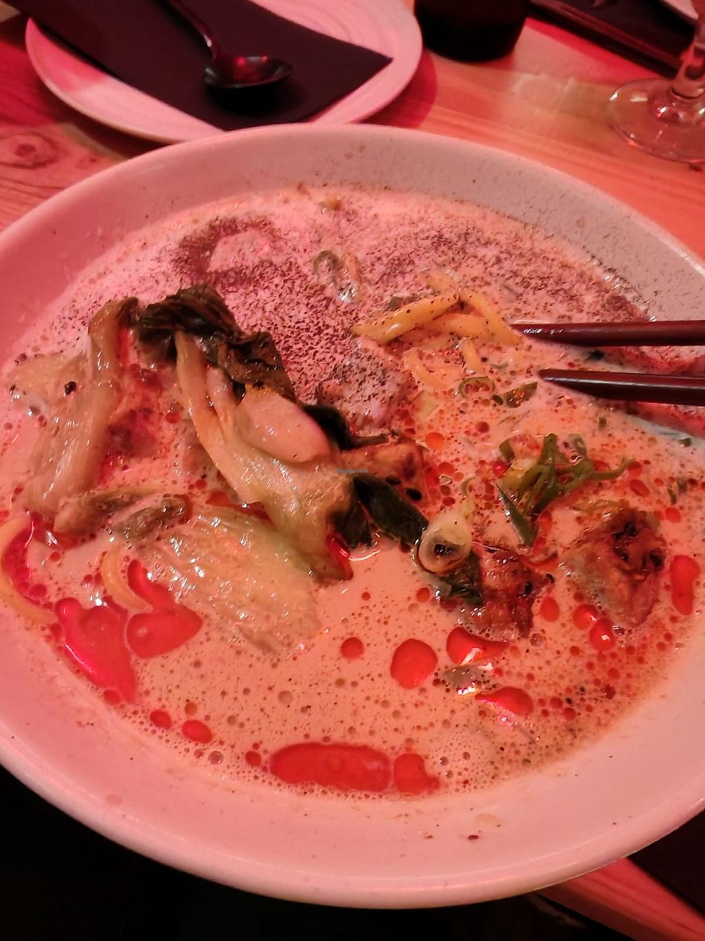 The ramen was one of the best I've had, the only downside was that it was slightly oily, but in hindsight I think it was chilli oil. The spiciness took me by surprise (it is mild-hot) and gave me the sniffles, but really was a welcome addition to the dish. The firm tofu gave it that "meatiness" and was full of flavor. The pak choi was a "filler" item so was nothing special, and I did not notice the nori. The broth with the spiciness, worked great with the creaminess of the coconut milk.