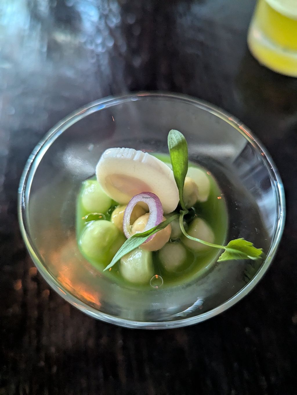 I love the idea of a veggie forward restaurant since I do think vegan menus often over rely on processed meat substitutes but this meal left me HUNGRY. The staff is really lovely and the service was well-coursed and great. I also didn’t care for the austerity of the decor. I think tasting menu experience should feel more special.