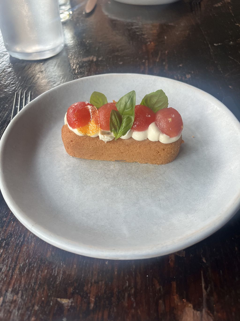 The tomato donut (vegan) was nothing short of insane. One of the best plates of food I've ever had. Fluffy and delicious with distinct tomato flavour in the jam, fresh and donut elements
