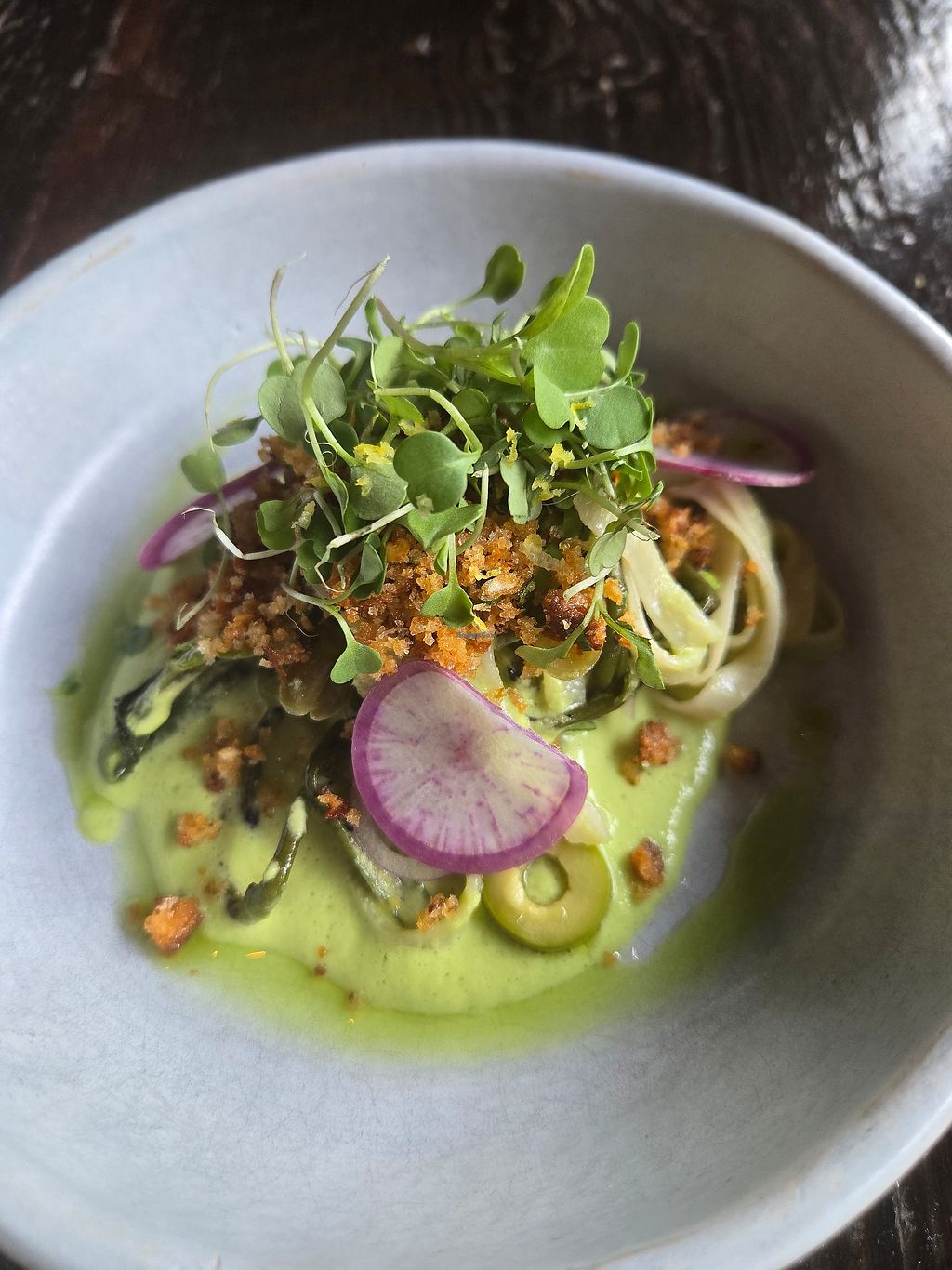 Highly recommend giving this place a try! Even though they are vegetarian, you can order everything vegan. Animal products are never the star of any dish but they do provide a substitute for whatever was used rather than just removing it. For example, the asparagus lasagna had pecorino shavings and they used a vegan pecorino for mine. This was also fun as a solo diner so don’t be afraid to come here on your own. I recommend sitting the chef station.