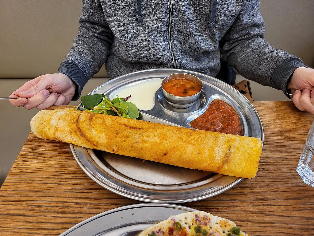 They have a great selection of vegan Dosa and great baked goods as well really felt like a combo fusion of vegan cafe and Dosa place.