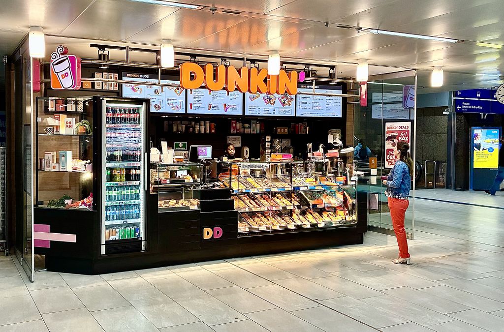 Long-established US donut & coffee chain that may have a couple vegan options including hash browns, a few of the bagels, and plant milk for coffee. In some areas they have introduced vegan donut options. Open Mon-Fri 06:00-22:00, Sat-Sun 07:00-22:00.