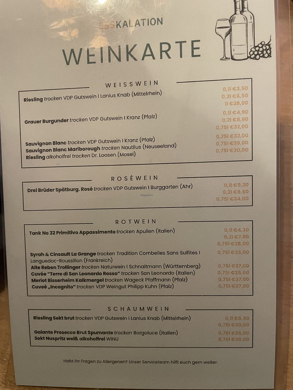 Viele Allergene bereits klar ausgezeichnet. Ansonsten wird bei Nachfragen sofort geklärt, ob etwas bestimmtes drin ist.