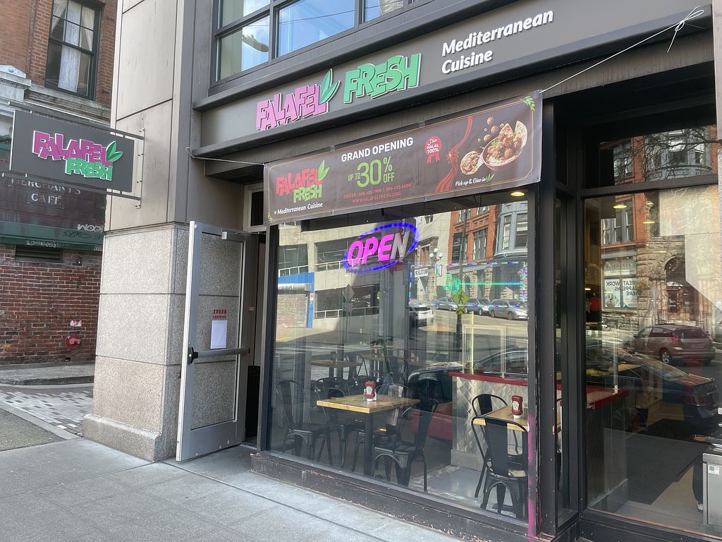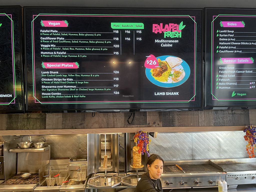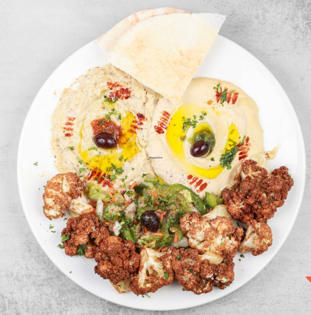 Serves meat, vegan options available. Mediterranean restaurant offering vegan choices that include falafel plate, falafel sandwich, falafel salad, cauliflower plate, cauliflower sandwich, cauliflower salad, mixed vegetable plate and falafel & hummus plate. Open Mon-Sun 10:00am-10:00pm.