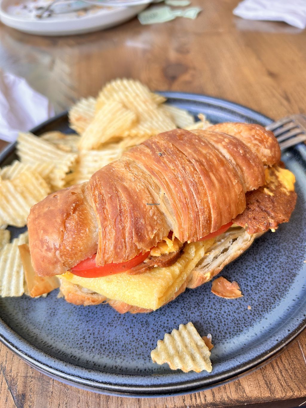 Read moreI got the croissant breakfast sandwich with added veggies and the salad side as well as a maple citrus creme brûlée latte. I used a fork and knife to eat my sandwich with the salad. I think it would’ve been a bit bland without. The croissant was a bit dry (maybe slightly stale). I agree with others that chips are an odd side. I also know that kitchen space at these types of places tends to be very minimal, making well-executed options like breakfast potatoes less of a possibility. I would ditch the sides honestly and amp up the sandwich itself—aioli, tomato jam—something to make it less dry/bland and elevated from what someone might make at home.