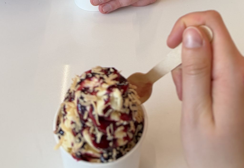 New Zealand style ice cream shop consisting of blending frozen fruit with either dairy or non-dairy ice cream. Vegans inquire about cones. Open Mon-Sun 12:00pm-10:00pm. Delivery and Online Service hours are 9:00 am - 10:00 pm.