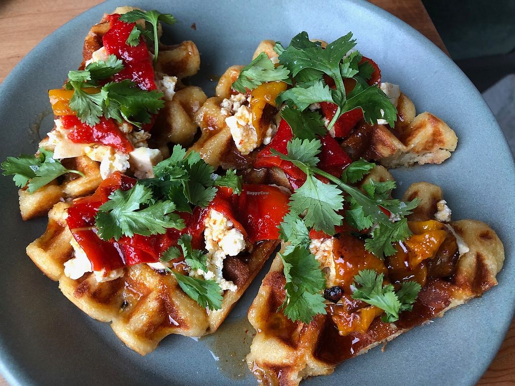 A+ experience at Feral. Everything was outstanding and every bite was bursting with flavor and craftsmanship. Tomato Salad was such a gorgeous melange of freshness and complex sauces. Really well done. Savory Waffles and Peppers with Tofu "cheese" had this incredibly tasty backbone with each waffle bite and then the savory / sweet combo of the tofu and peppers with a little maple syrup. Tofu sandwich was a winner. Warm and crispy draped in this delicious sauce on a fresh bun. Had a few bites of the Chantrelles Pot Pie as well and it was quite good.