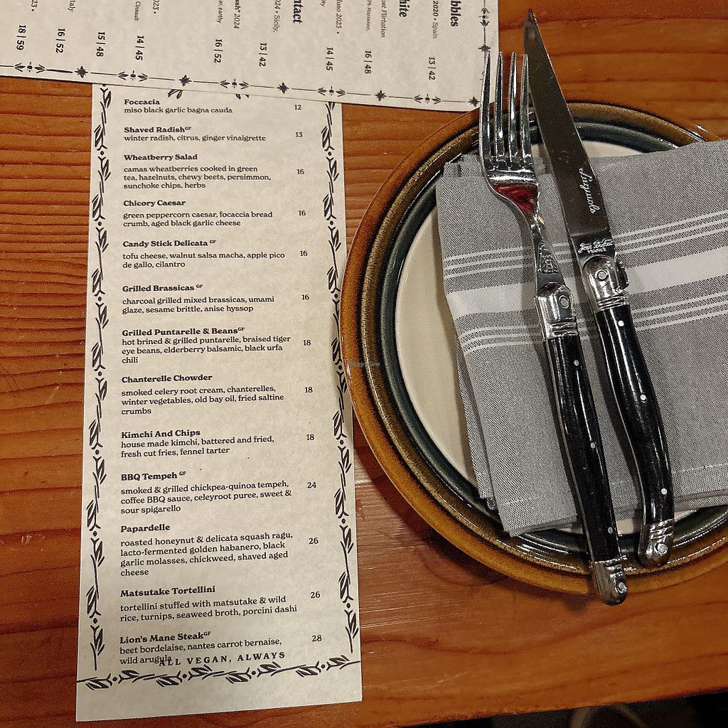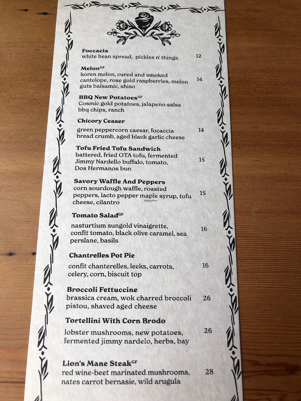Pros: The maitake mushroom steak frites are heavenly , Seitan piccata is so richly crafted , All local produce prepared with care