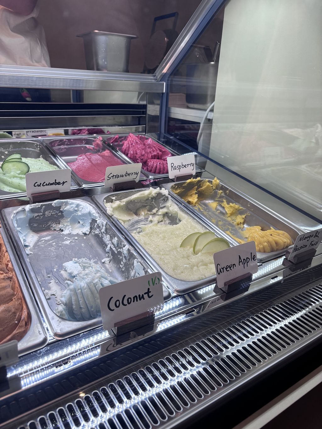 i tried the cucumber and coconut. cucumber was soooo refreshing. and the coconut was delicious and so creamy. not too overwhelming coconut flavor. staff is super kind