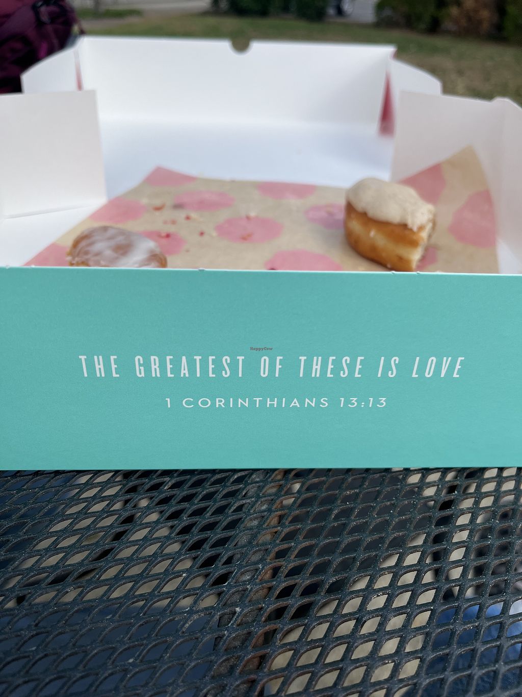 Read moreThey have 3 vegan options (that I guess rotate flavors based on other reviews), I had one of each; Vanilla frosted, Blueberry Lavender frosted, and an Apple Fritter donut.