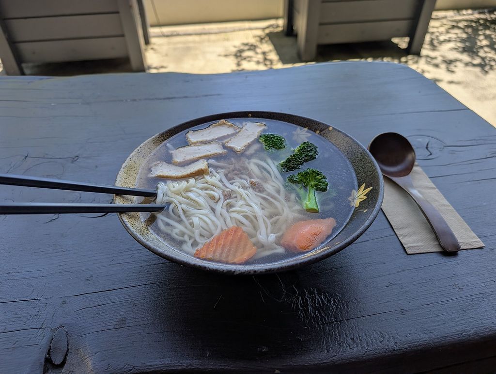 Contrary to the previous review, there seems to be numerous vegan options, having asked the people behind the counter. The photo is of the lucky noodle soup, somewhat basic, but not bad for a lunch. Many of the other things I saw people eating looked more vibrant and tasty.