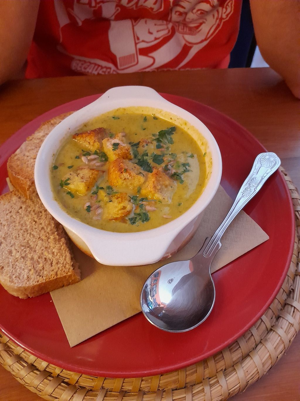 Cosy restaurant. I had the bread witch cheesy cream spread which was delicious. Soup of the day was also fresh and tasty.