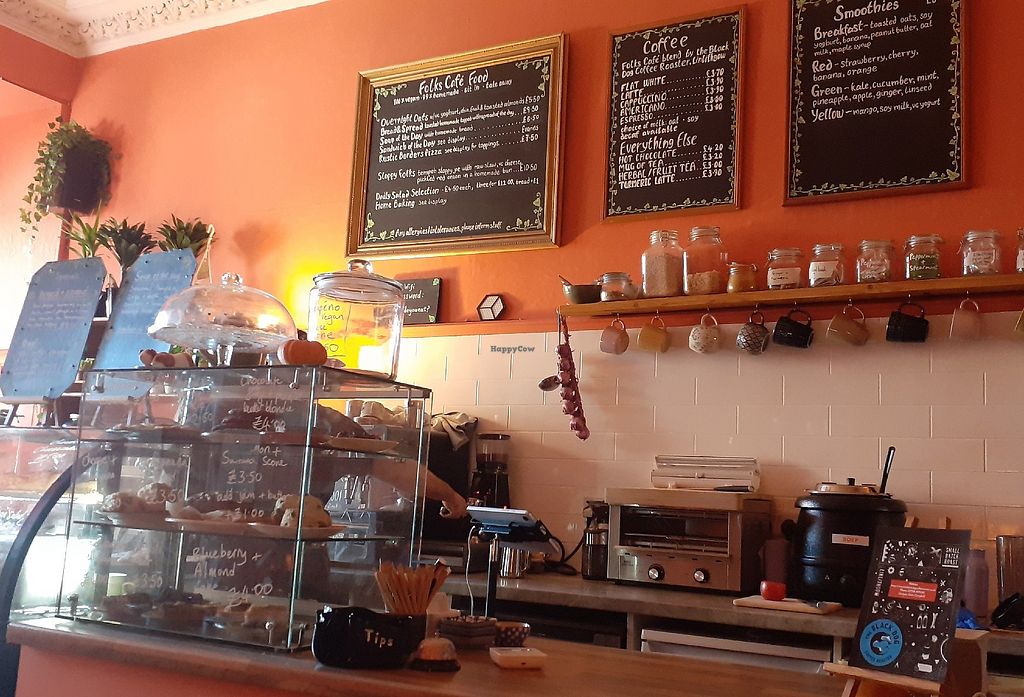 A very relaxed cafe with as good a taste in music as food. We had "soup of the day" and "bread with spread" as well as scones and coffee. All delicious, the man running it was very kind. I love the artwork. It was unexpected to walk in and find I have the same robin artwork on my living room wall as Folk cafe have on their wall!