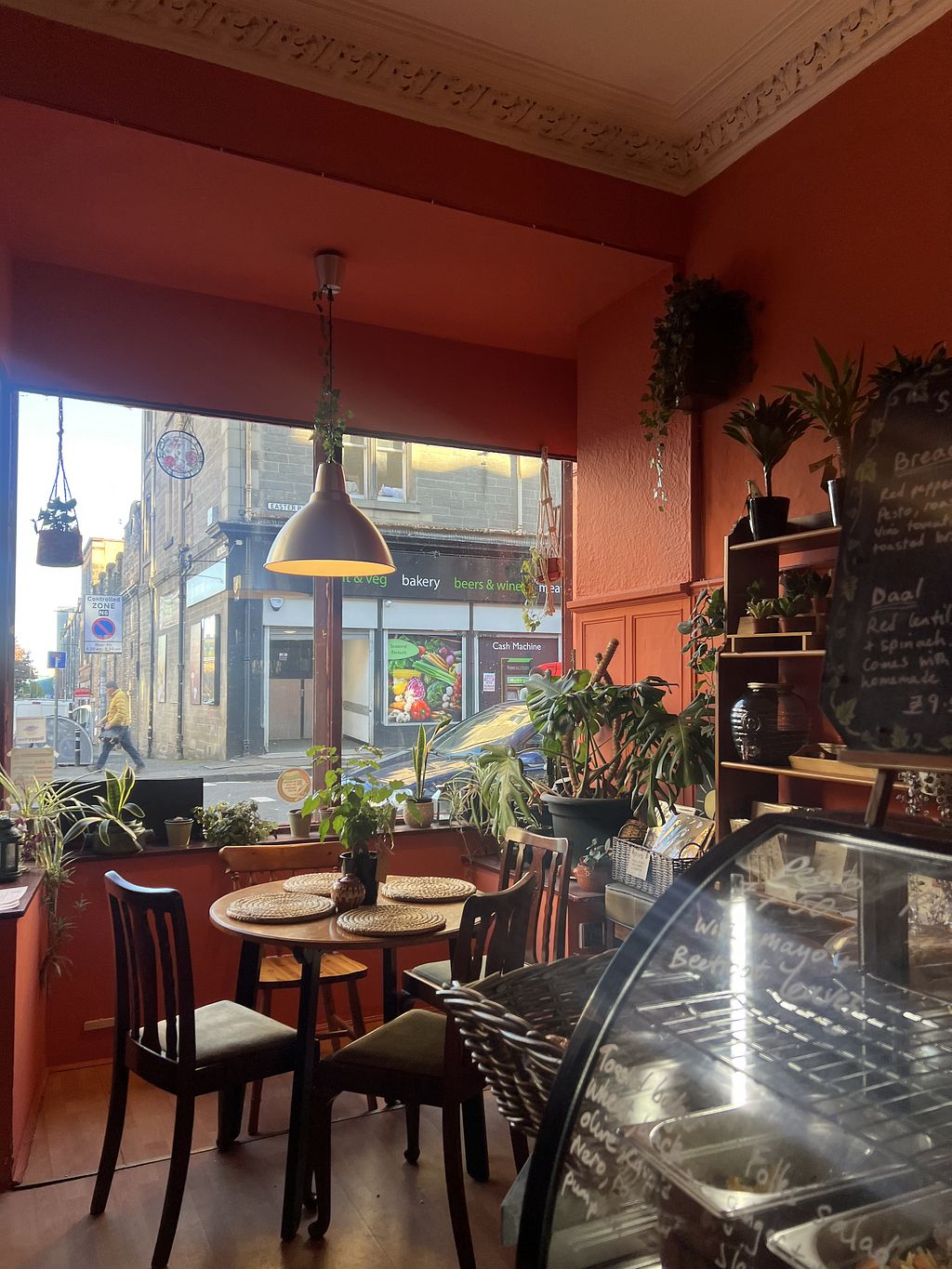 Beautiful home made delicious plant based goodness in a great vibes setting surrounded by healthy plants and art, bathed in vinyl-played grooves,- my new favourite vegan cafe to which I shall regularly travel from the Scottish Borders to treat myself!