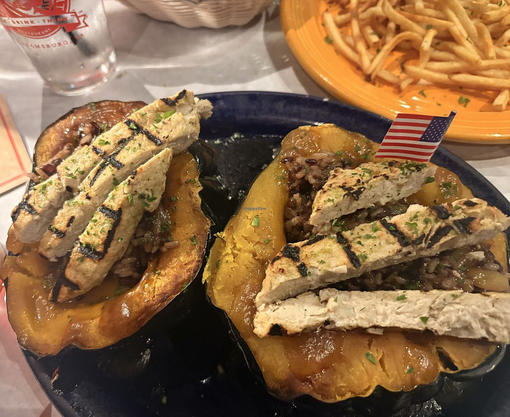 We used to come here years ago. They don’t serve breakfast anymore due to staffing shortages. Sad, as it was the only game in town which had decent vegan breakfast. Dinner was fairly bland. My wife had the butternut squash with tofu and I the Beyond burger on gluten-free bread. Both needed flavor. The only sauce, barbecue, was way too sweet. They prepare the vegan options on the same grill as the meat.