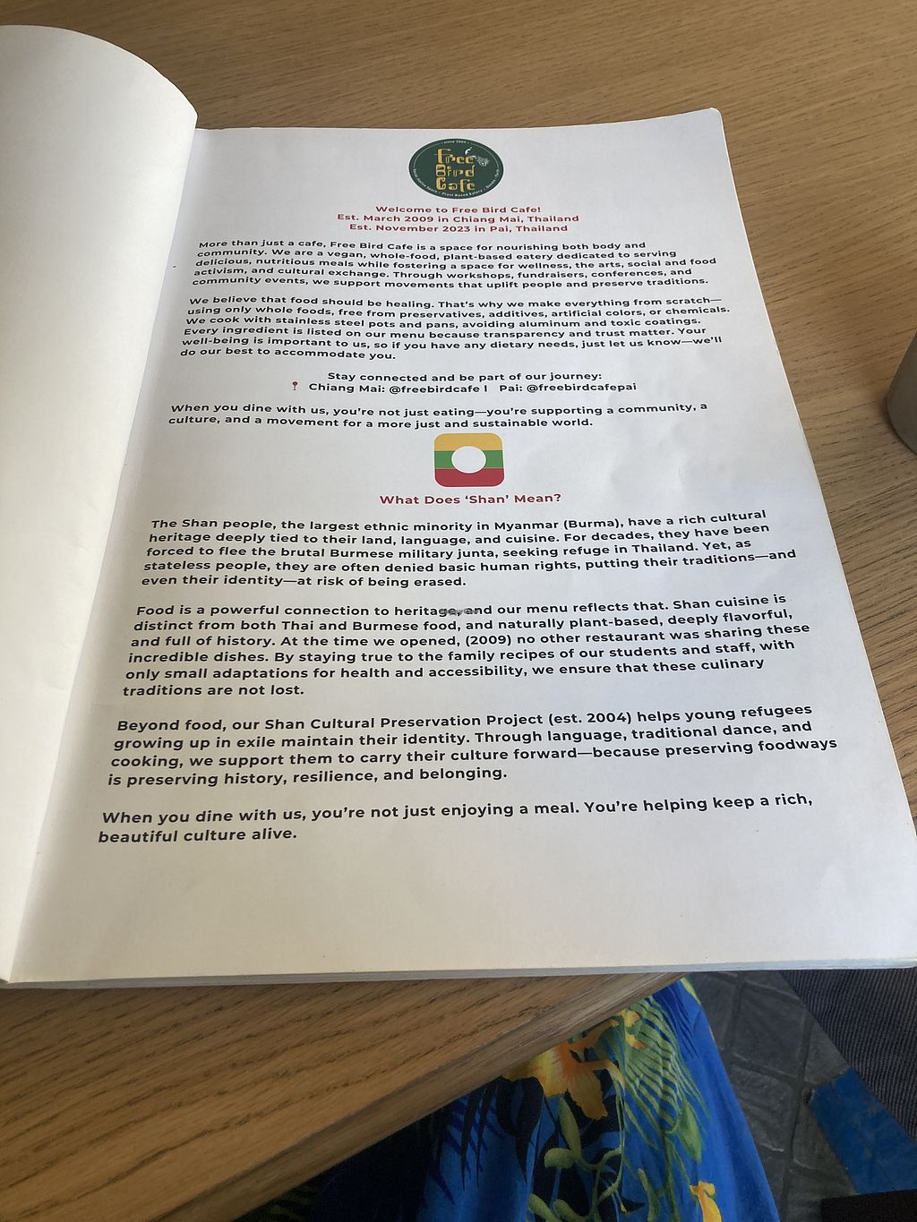 Spending money here is putting money to great causes. It’s a non-profit organization where the money goes to the Shan people. The food is good, real and vegan. They have a great variety. The portions could have been more generous, but still 5/5 ⭐️⭐️⭐️⭐️⭐️
