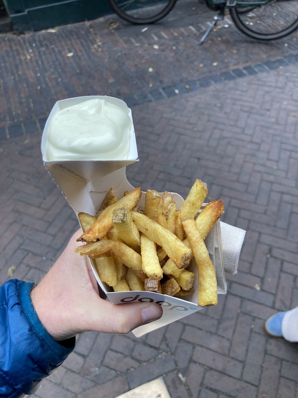 I think this is the best fries place in Utrecht. Potatos are cut in the moment with peel and well designed packaging