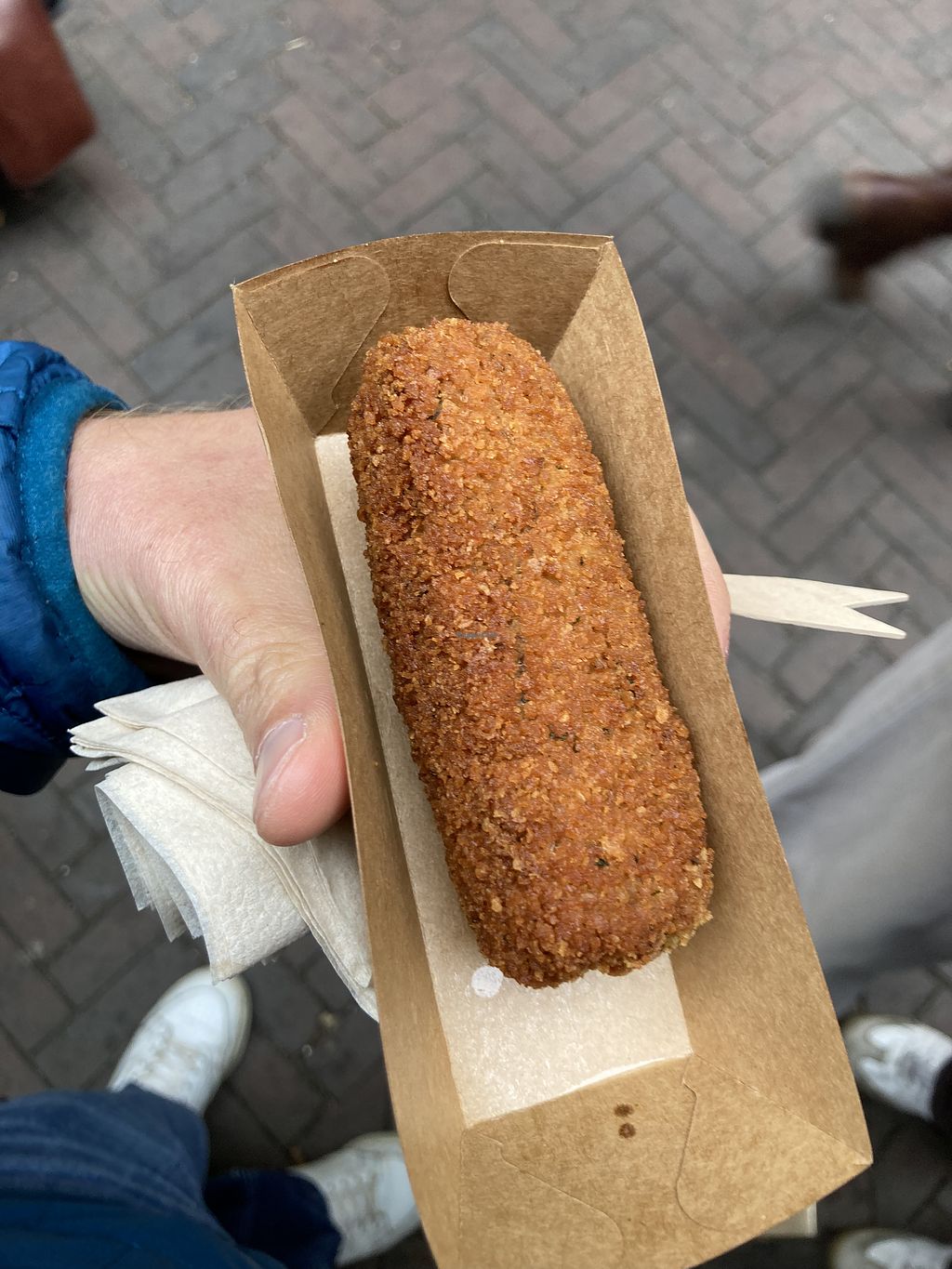 Their vegan kroket, fries and vegan mayo are very good. It’s quite limited, but allright for a quick snack.