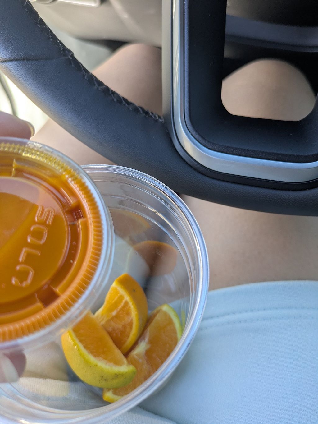 I got the turmeric shot and it came with fresh orange pieces. The blue mylk bowl was delicious. Everything is vegan. A vegan's paradise!