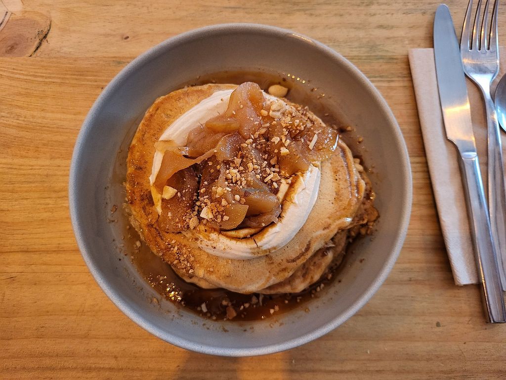 Literally everything is so delicious there! I personally recommend banana and peanut butter pancakes - cause I’m weak for this combination 🥹 - and the croissant brioche misto. The atmosphere is so cozy and welcoming, and the staff also really nice! Perfect spot for working, studying and meet up with friends 😊