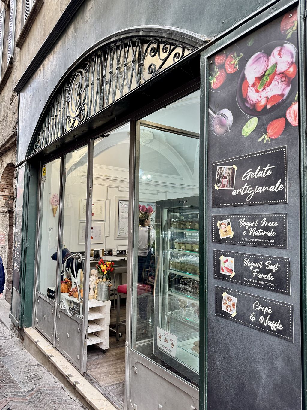 There are many kinds of vegan icecreams, I had vanilla raspberry, (vegan) nuts and coffee. The icecream is stored in round metall boxes with lids like i know the traditional italian ice cream. You can quickly recognize the allergens (like milk) from the signs, I wish they add a symbol for vegan.