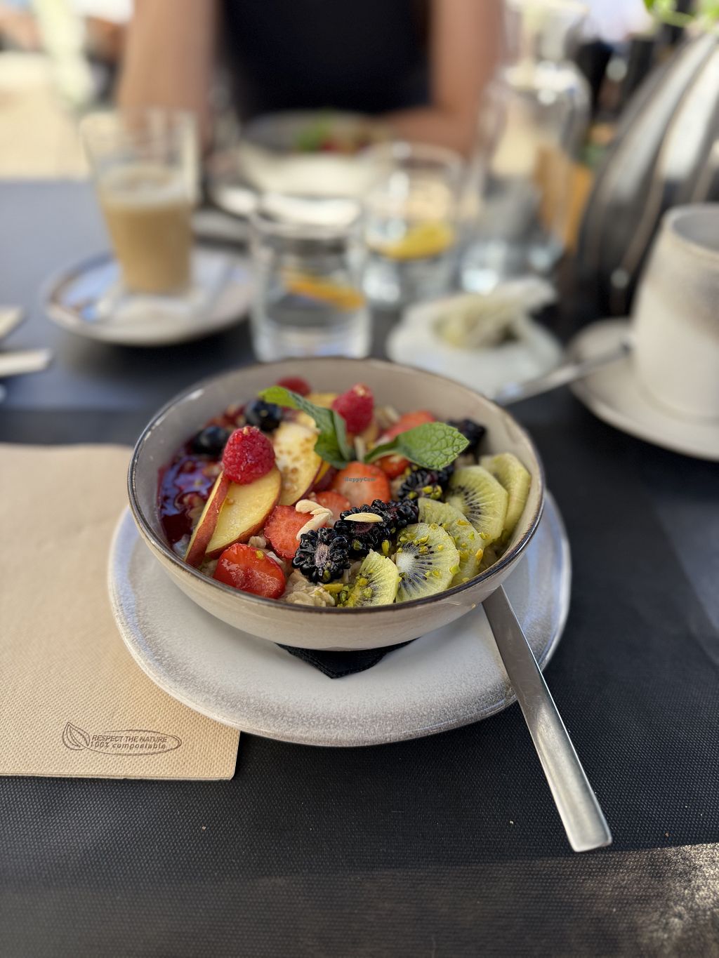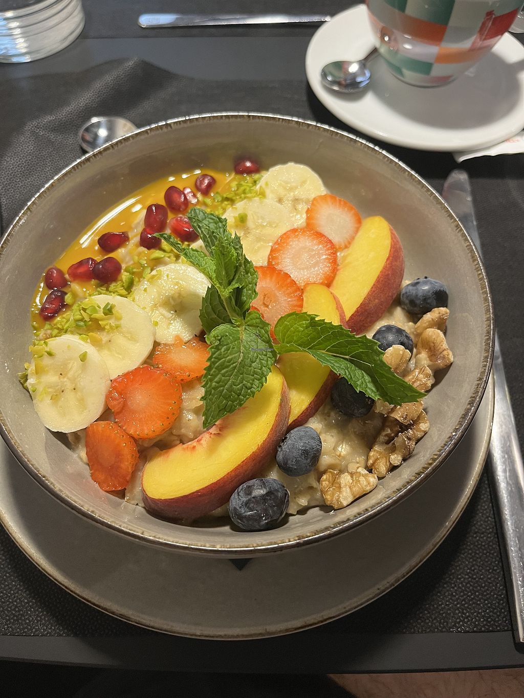 Wir waren spontan da und konnten deshalb leider kein Veganes Frühstück bekommen, weil es „die Küche sonst aufhält“. Leider gibt es außerdem am Wochenende kein A la Carte. Netterweise bekamen wir dann aber Porridge angeboten. Dieser war ganz gut.