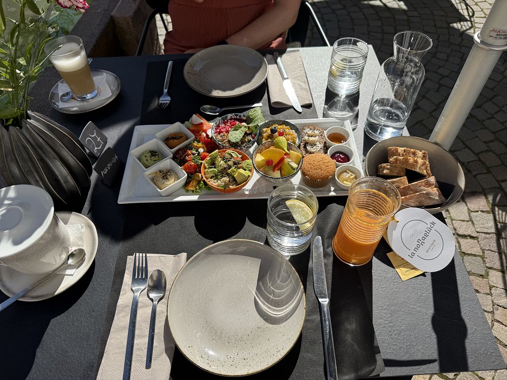 Wir waren in unserem Bozen-Urlaub 2x hier frühstücken. In Bozen selbst gibt es leider nur ein sehr geringes veganes Frühstücksangebot. Wir waren sofort begeistert vom Café Nonnaglück. Die Location ist total schön und das Essen super. Beim ersten Mal hatten wir jeweils ein toll angerichtetes Avocadobrot und ein Porridge mit Obst. Es gibt auch alle Kaffeespezialitäten mit Hafermilch. Für das zweite Mal haben wir uns den veganen Brunch vorbestellt (Achtung: ohne Vorbestellung geht dieser nicht, außer man möchte mindestens eine Stunde warten - man kann online reservieren und den veganen Brunch angeben). Es war absolut köstlich! Wir haben ihn uns zu zweit geteilt, das hat uns gereicht. Eigentlich wäre dieser nur für eine Person. 100%ige Empfehlung. Wir würden am liebsten nochmal hingehen, müssen aber leider abreisen.