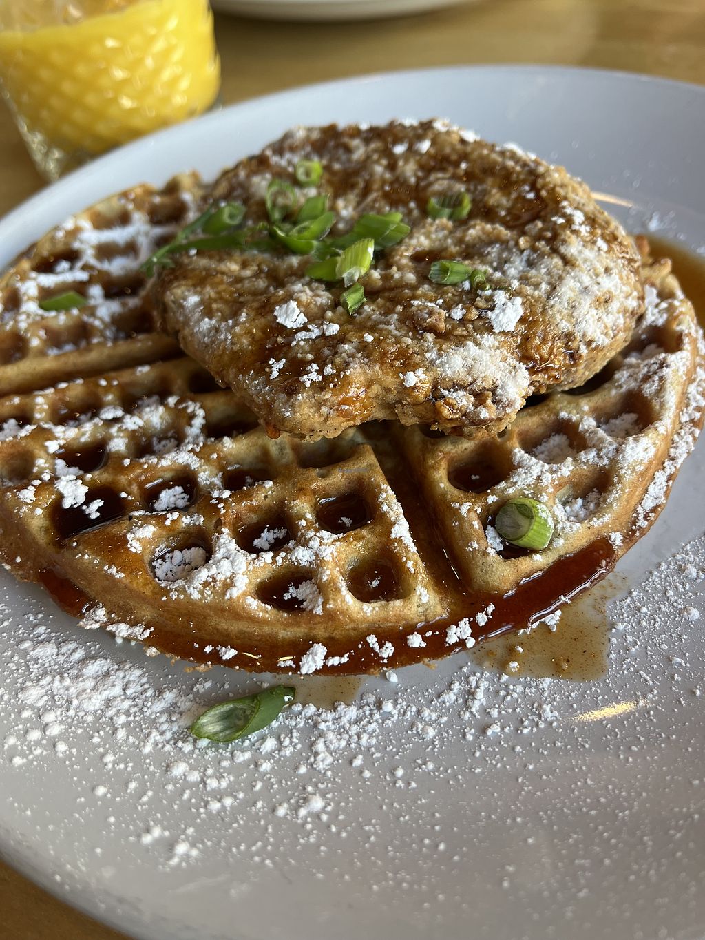Vegan French Toast, Breakfast Sandwich and tater tots were excellent. The Vegan Chick’n and Waffles had a nice sweet and spice because of the hot honey and maple syrup. Very good.