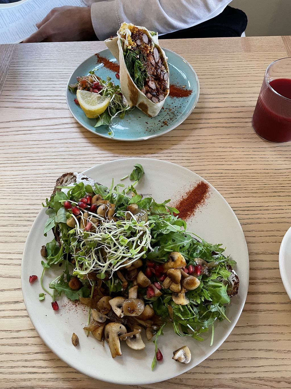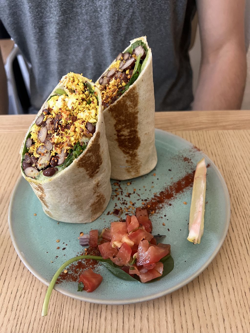 I visited twice, once for a snack and another for a meal. Both times the food was fantastic and not so expensive. I had the breakfast burrito and it was likely the best and healthiest one I've ever eaten. Fresh pomegranate seeds on the plate below the burrito, how original and tasty!