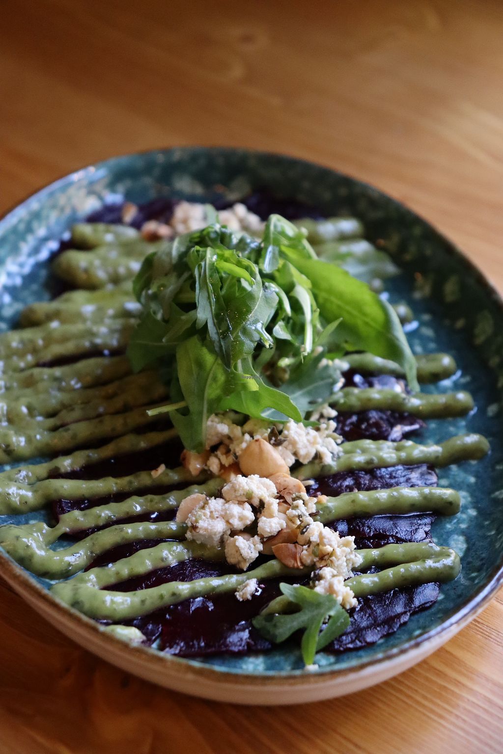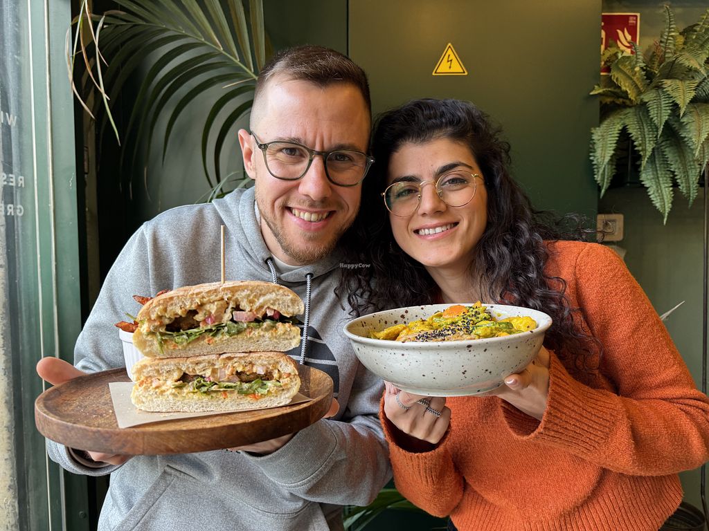 Nada mas entrar te das cuenta del ambiente tranquilo y armonioso que transmite, la música, la iluminación, la atención del personal, y ni hablar de la comida, todo es perfecto, me alegra mucho escoger este sitio y que llenado mis expectativas. Mi padre y yo pedimos unas hamburguesas acompañadas de boniatos fritos, ambas estaban muy buenas, yo pedí una de quinoa con remolacha qué estaba muy rica, la de mi padre fue estilo americano con carne de heura, y según su opinión, sabía igual que una de carne, la porción de boniatos fritos era muy generosa y la mayonesa vegana hacia match perfecto. También pedimos unas bravas de entrada qué estaban muy buenas, la cocción era perfecta, la salsa era picante pero el justo necesario, para resaltar su sabor y no opacarlo, tenía un sabor a cúrcuma y pimiento ahumado delicioso. La mía la pedí con pan sin gluten y estaba muy bien. Se los recomiendo ampliamente, sean veganos, vegetarianos o no.