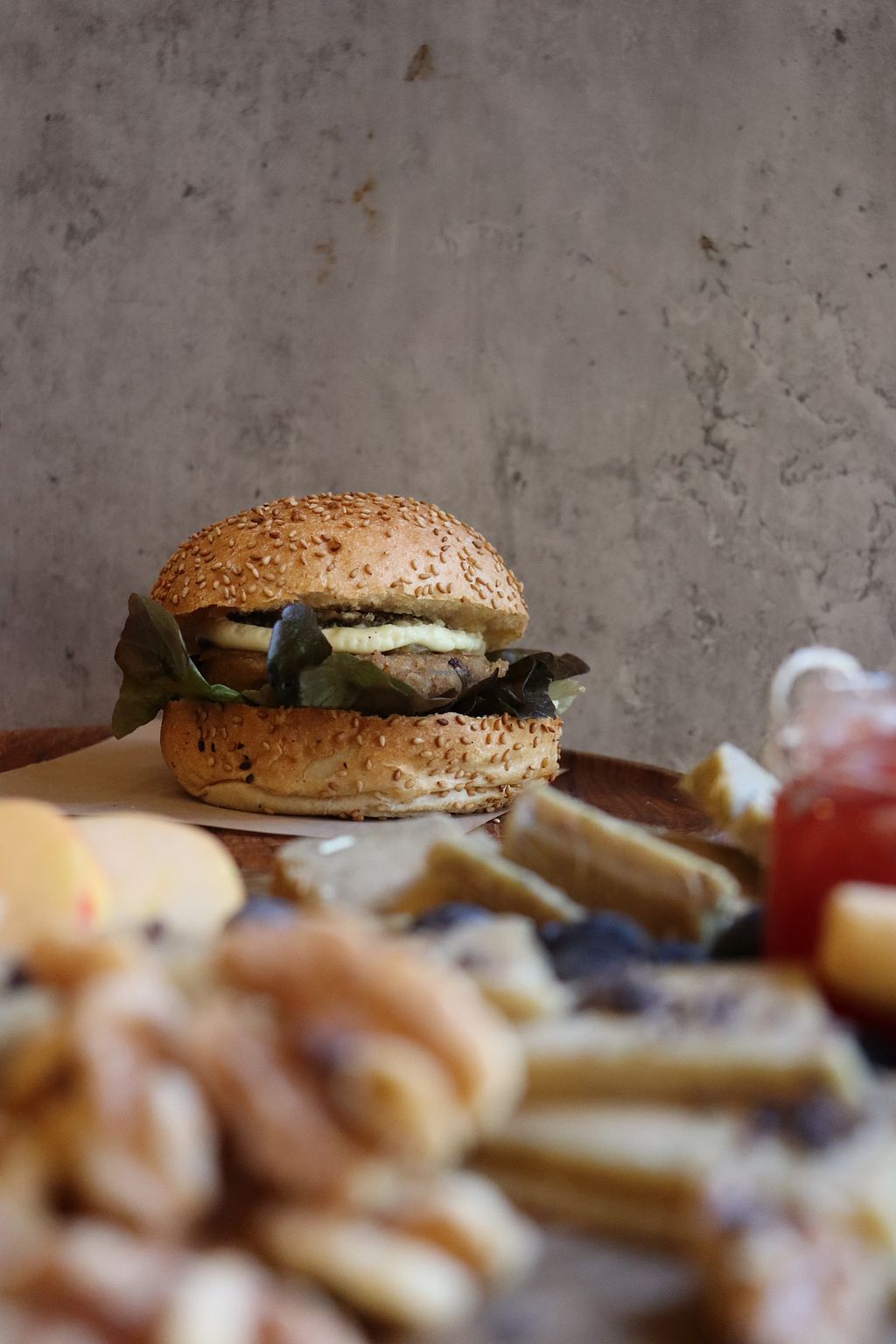 Pros: BRAVE burger with vegan cheese, Hummus