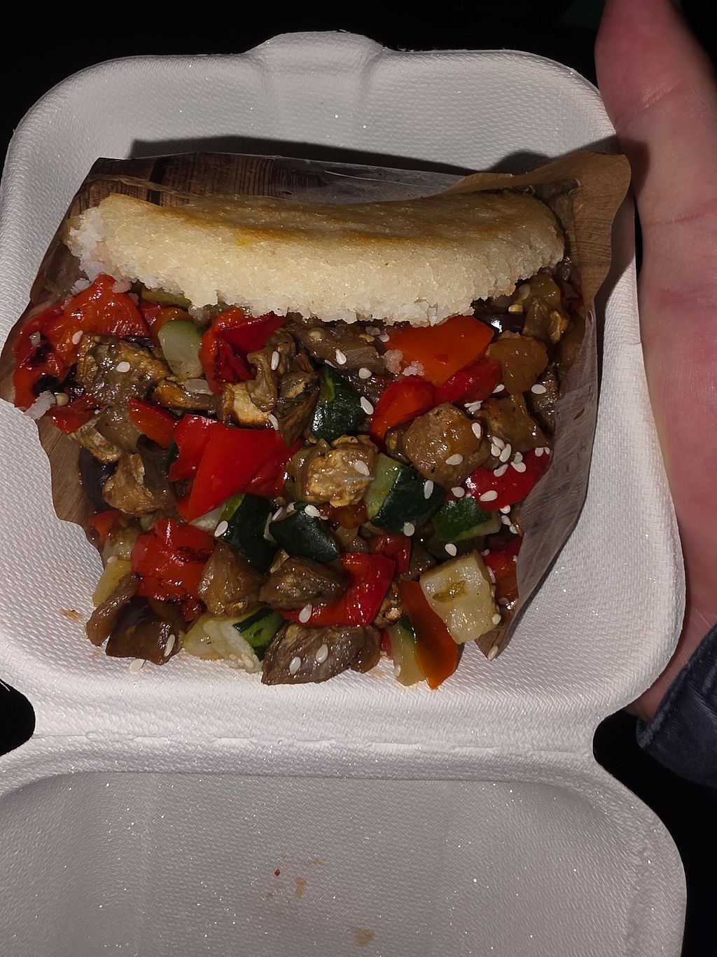 Es gibt genau 1 vegane Option, das vegane Arrepa. Für 8€ etwas teurer aber es schmeckt sehr gut! Besonders die Kochbanane macht diese venezualische Delikatesse zu etwas das ich nochmal kaufen würde.