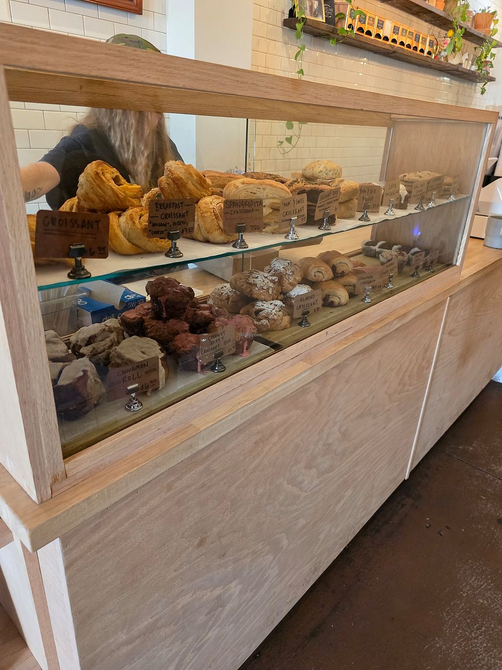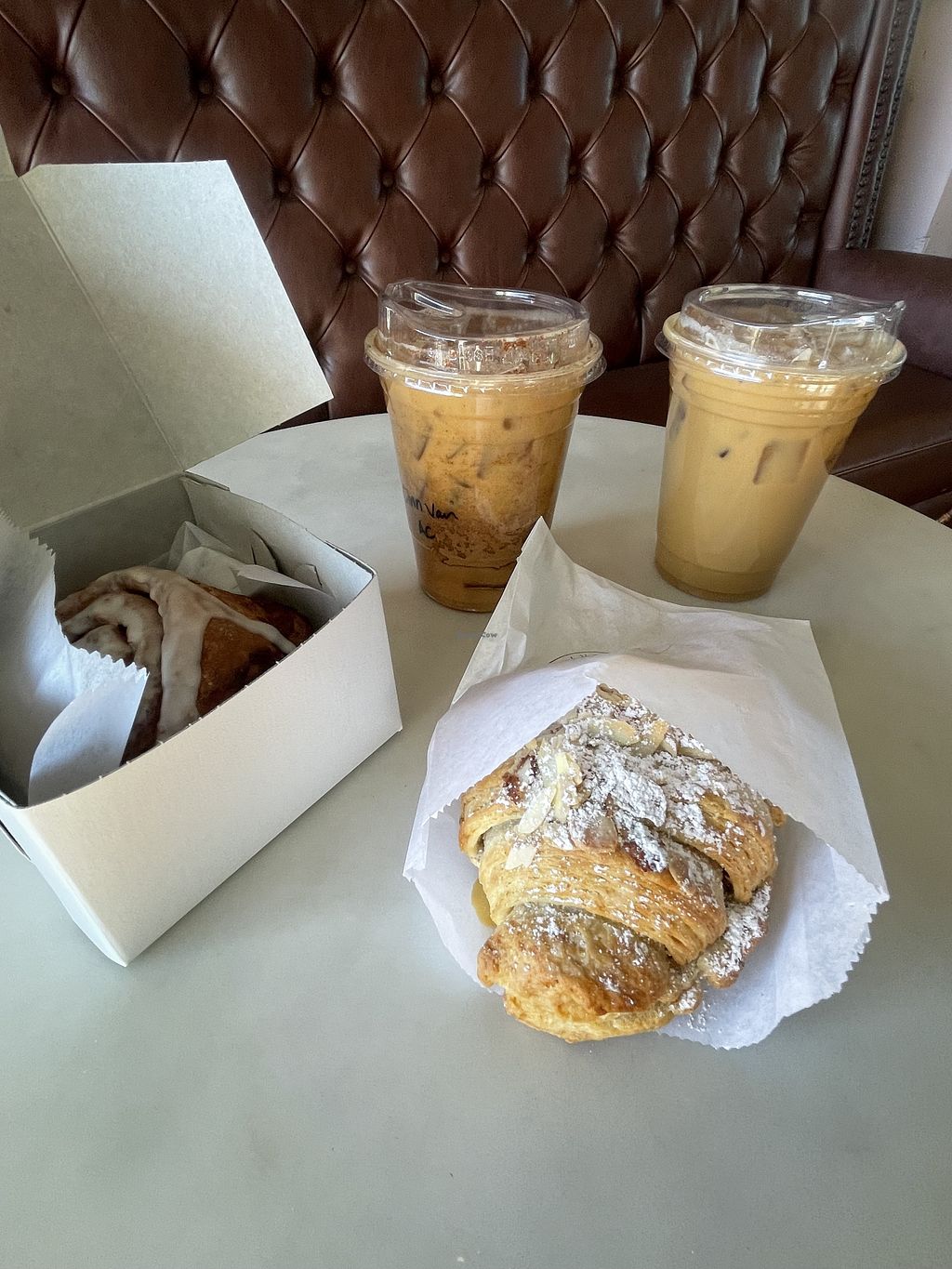 So many great options!! I got the almond croissant and my friend got the cinnamon bun. We had lattes with their homemade almond cashew milk. Amazing options, wish I could go all the time!