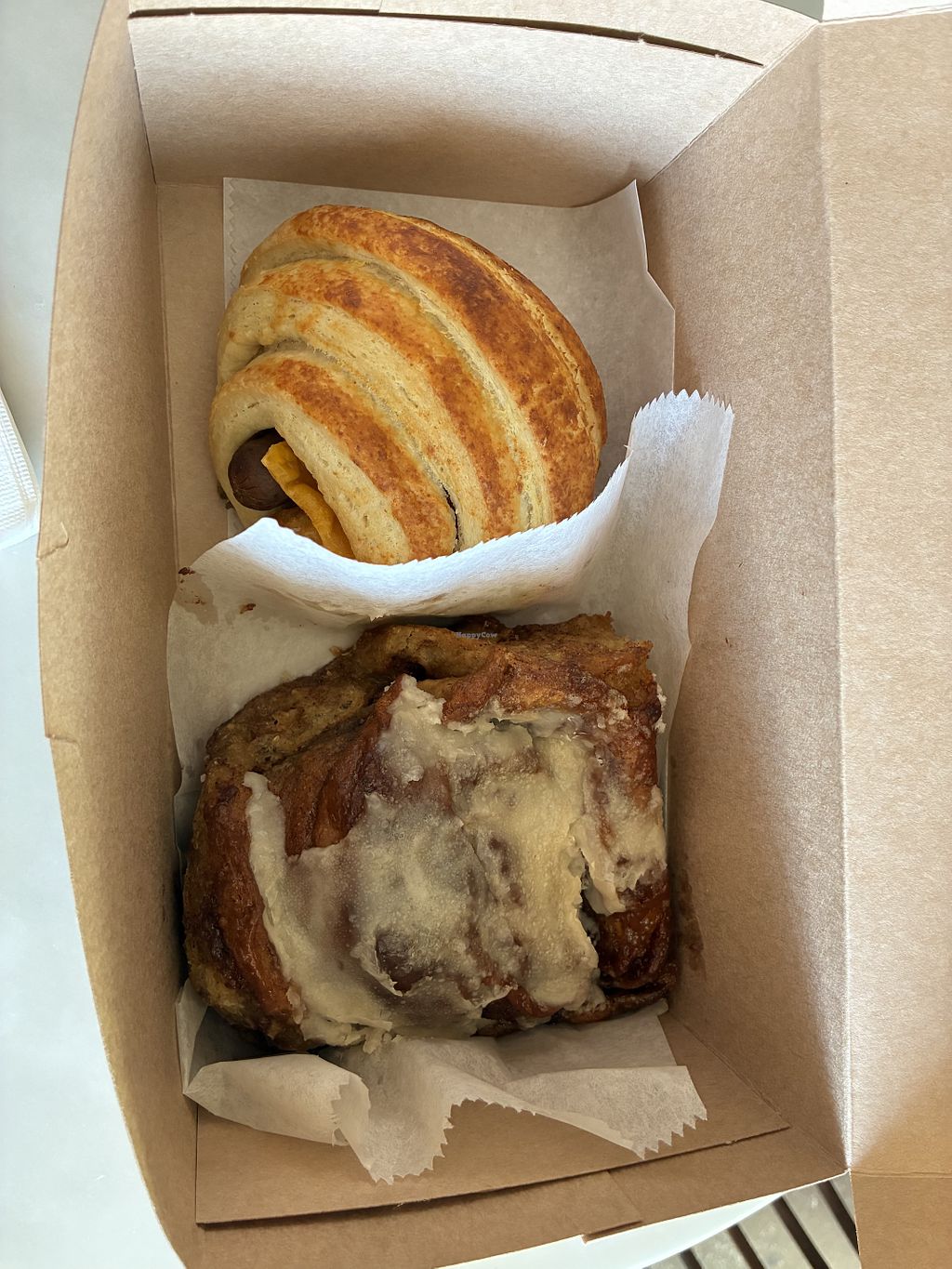 Breakfast croissant was very good, cinnamon roll was delish, non vegan friend wasn’t as impressed with cinnamon roll. Got the last one at 9:30am so be sure to go early. Mint mocha was good too.