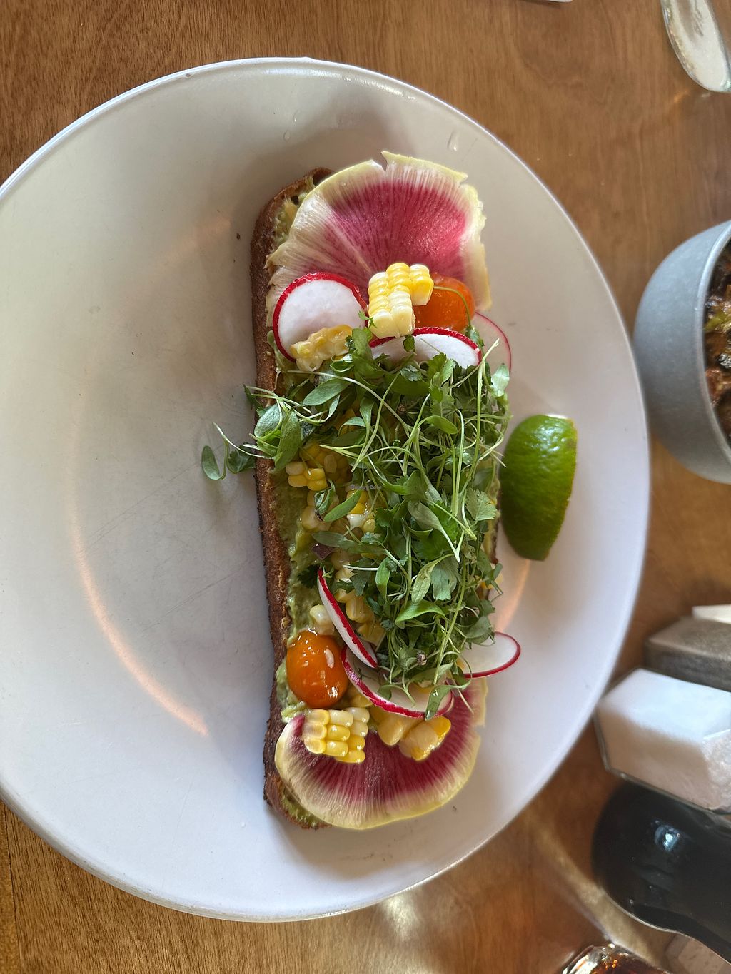 Serves meat, vegan options available. Australian-inspired restaurant with vegan choices. Menu includes vegan cacao bircher muesli, smashed avo toast, fried brussels sprouts, vegan chorizo and more. Plant-based milk alternatives available. Reported that dinner-like options will be available sometime in the summer of 2023. Open Mon-Sun 8:00am-5:00pm.