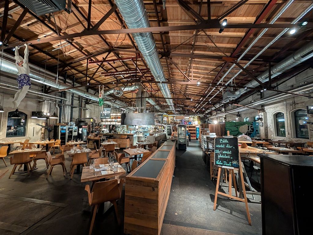 Read moreThe food was very expensive and maybe a bit above mediocre, there were one or two innovative ingredients mixed with local, German veggies, but a slab of cooked celery with some kale is not worth 25 € imo. The dessert was similarely disappointing and not worth 15 €. Would come back for the flea market and the food stands next door, but not to the restaurant.