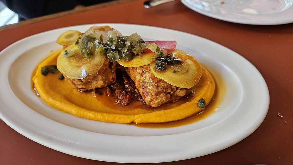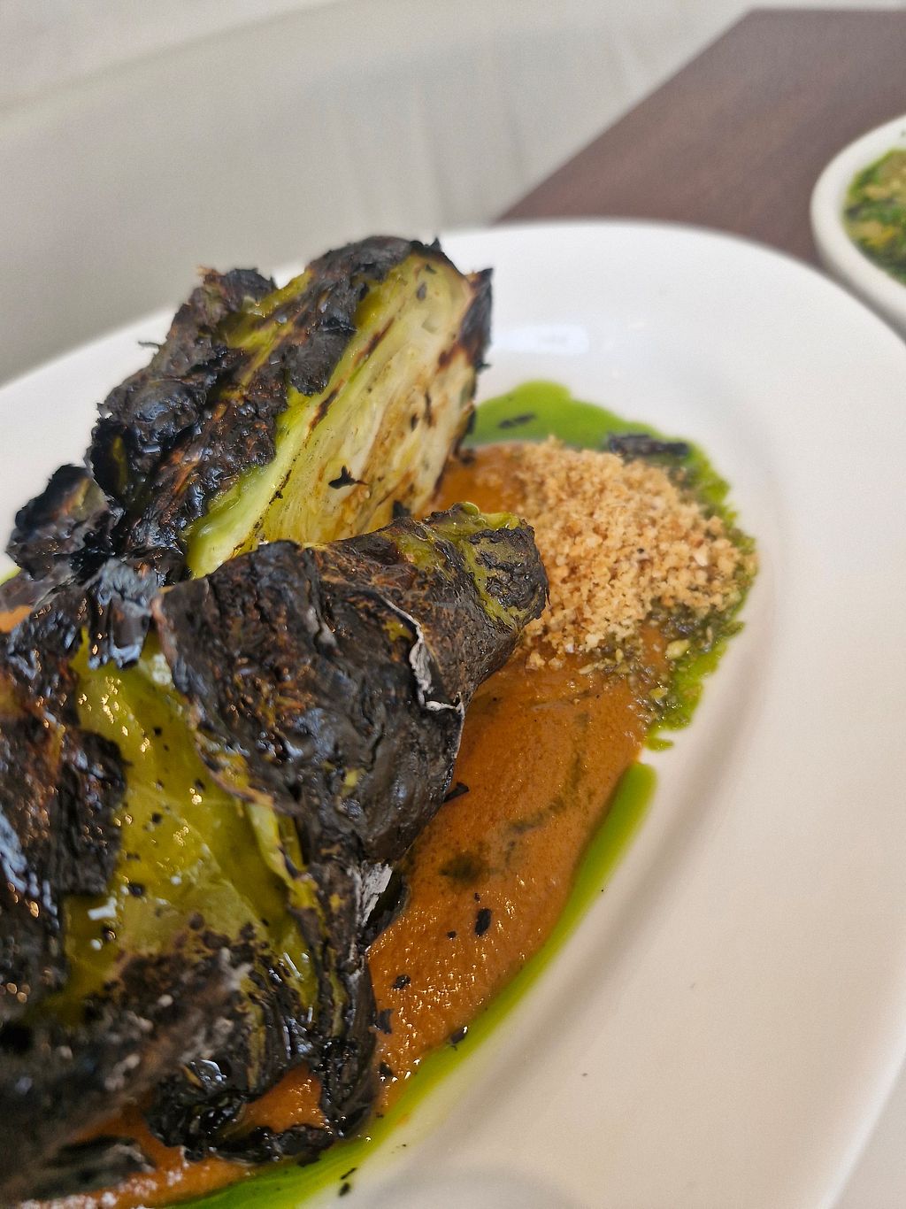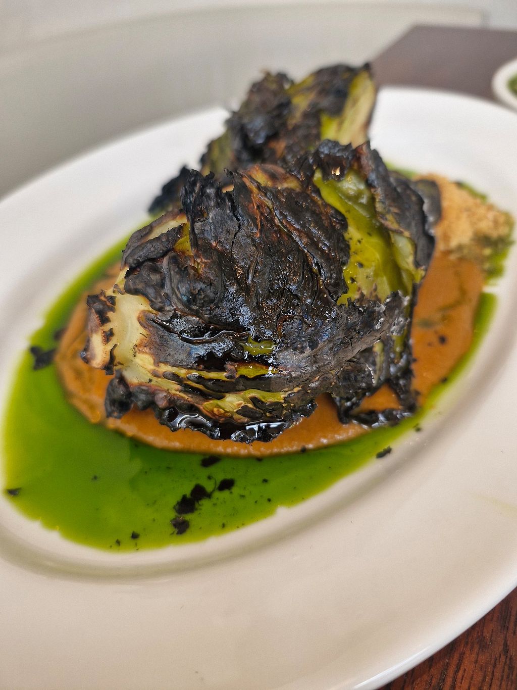 Had the Grilled Hispi cabbage, Leak and butter bean braise, House Kombucha and orange sponge pudding . The cabbage was cooked perfectly, but it was overly chargrilled which have it an overbearing gritty burned taste . The butter beans were cooked to perfection,it was slightly overpowered in the different sauces, which made it diffcult to appreciate the different sauces, however it was a warm comforting dish. The orange sponge pudding was light, great flavours, the Vanilla cream was exceptional and overall it worked well with the flavours well balanced. Overall an enjoyable experience with the dessert been the highlight. The food was creative and original, staff were friendly and there was a great atmosphere, so would recommend.