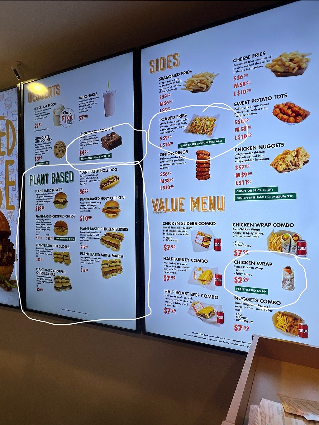 Serves meat, vegan options available. Burger restaurant offering vegan burgers, hot dogs, chopped cheese, sliders and tenders. Part of a chain. Open Mon-Sun 11:00am-3:00am.