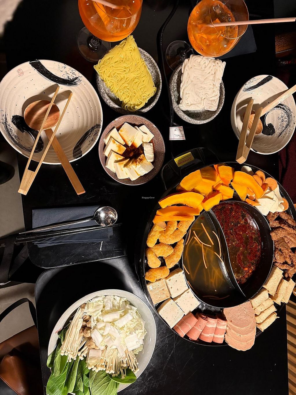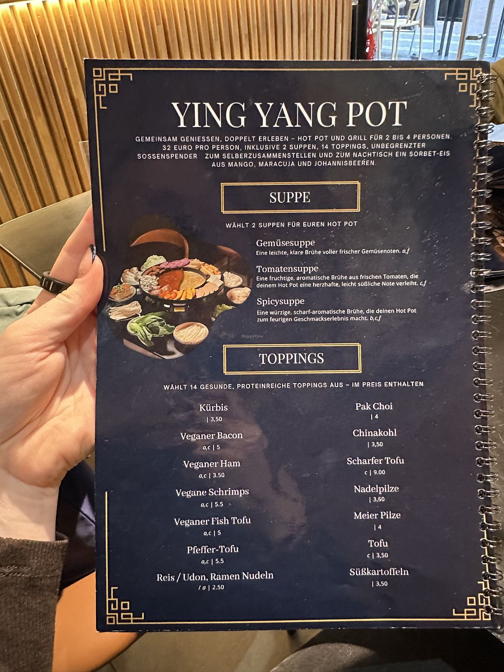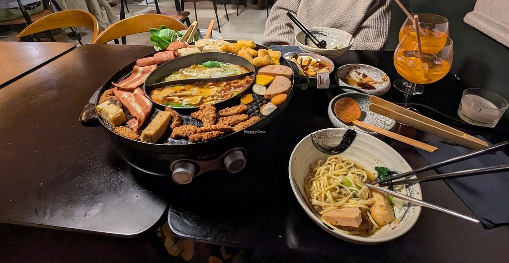 We ordered the "Hot Pot" which is a fun dish with two soups, lots of vegetables, noodles and different kind of vegan meat options. You can grill the vegan meat options and vary the temperature for the soup to boil and the grill. You cook everything yourself and choose what do add. You also get different sauces ( barbeque, peanutbutter, soy etc) that you can add to your soup. It was very delicious. And we got very good ice cream as a desert included. Especially for birthdays or other get togethers I recommend to book a table and hot pots.