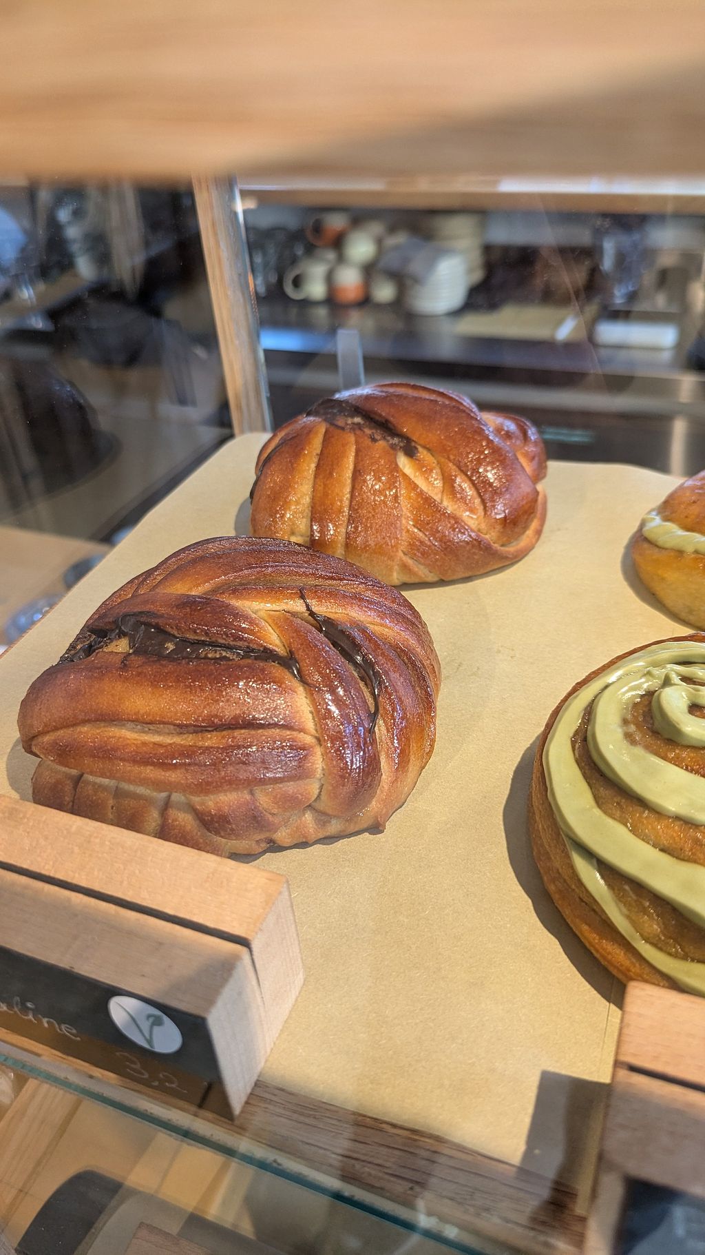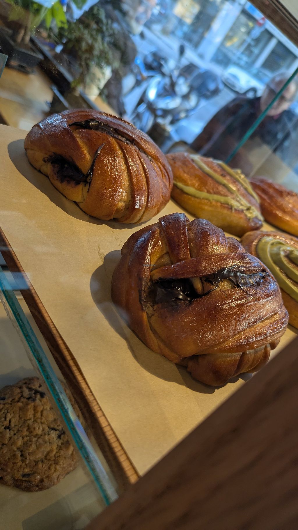 A bun filled to the Max with chocolate! Highly recommend. Price was €3.2 for the bun. Will return. Also close to another cute cafe nearby. Like the area.