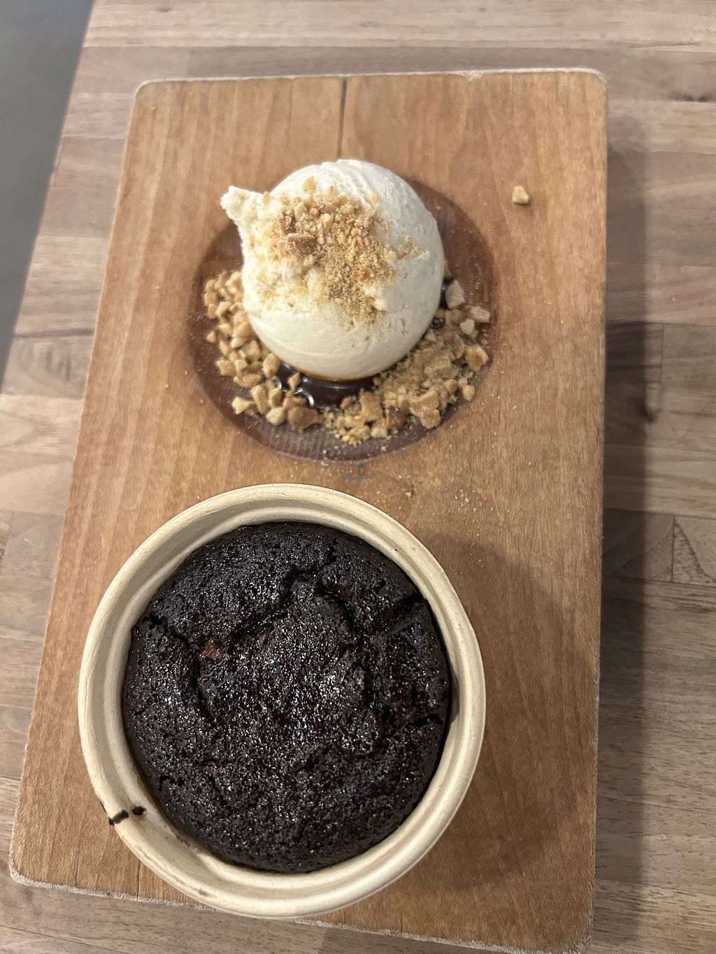Read moreWe had their vegan molten cake, vegan dark chocolate, with cashew vanilla ice cream, and it was so rich and delicious. If you love dark chocolate, you’ll love this. Best part about it is that it was mostly chocolate molten instead of cake. It was like a border of cake crust filled with thick chocolate pudding. Paired with the ice cream, it was divine. Definitely the best dessert in town for us.
