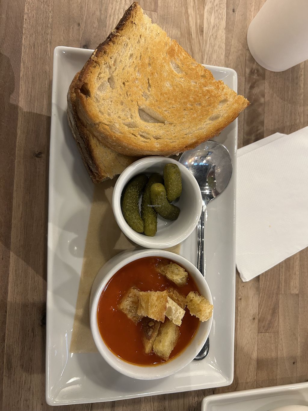 Everything was amazing. Got the vegan molten cake and the vegan grilled cheese tomato soup. Perfect comfort food