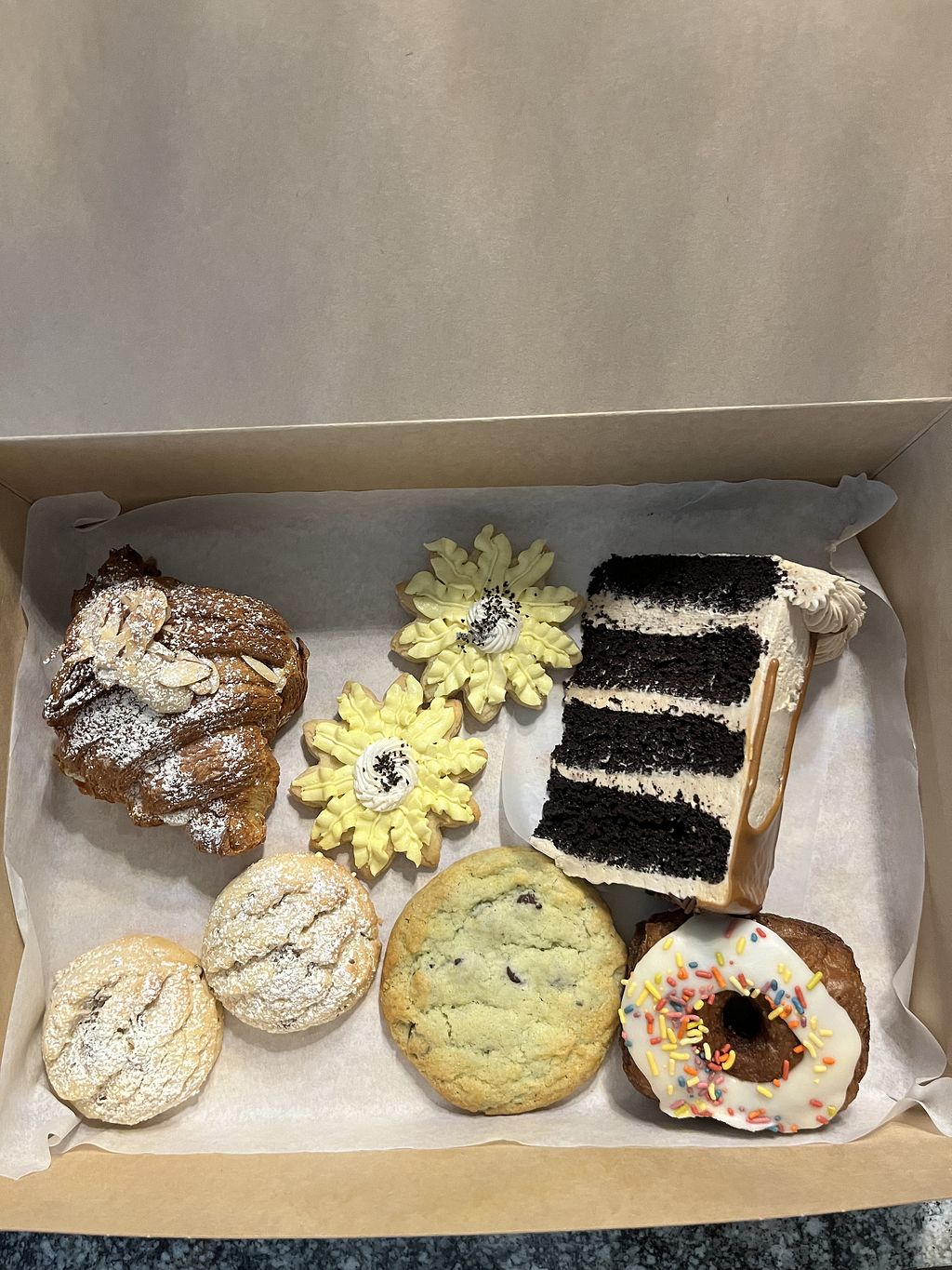 Got here first thing in the morning and ordered a brownie, gluten free chocolate cake slice, cinnamon roll, oatmeal cream pie, ham and cheese croissant, and a chocolate peanut croissant. Everything was absolutely delicious. Even the gluten free cake - which I was skeptical about as I've not had the best experience with gluten free pastries. I will 100% be returning here.