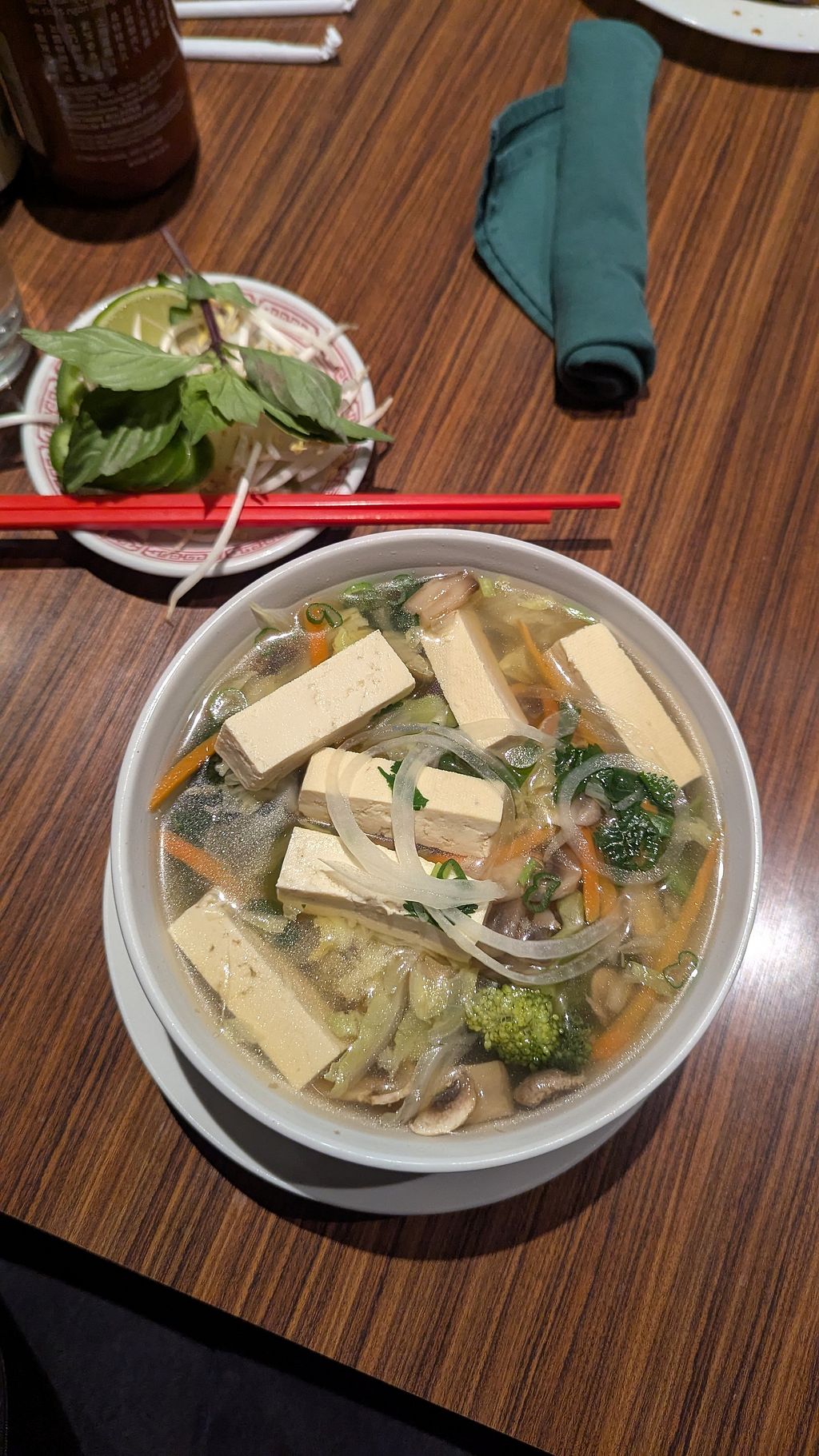 My parents live nearby so we eat here often. On more than one occasion, I have found chicken in my vegan vegetable pho. Finally got tired of them messing up and decided I won’t go here anymore. Beware!